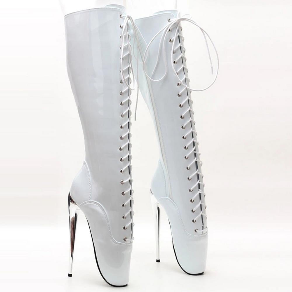 Fashion FHC 18CM High Heel Unisex Knee High Ballet Boots,Queen Dance Shoes,Fetish SM Botas,Front Laces,White,Black,Red,Customized Color