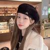 Korean Version of Autumn and Winter Hat for Women Japanese Beret Solid Color Knitted Wool Hat Winter Beret Hat Warm Painter Hat Thick Hat