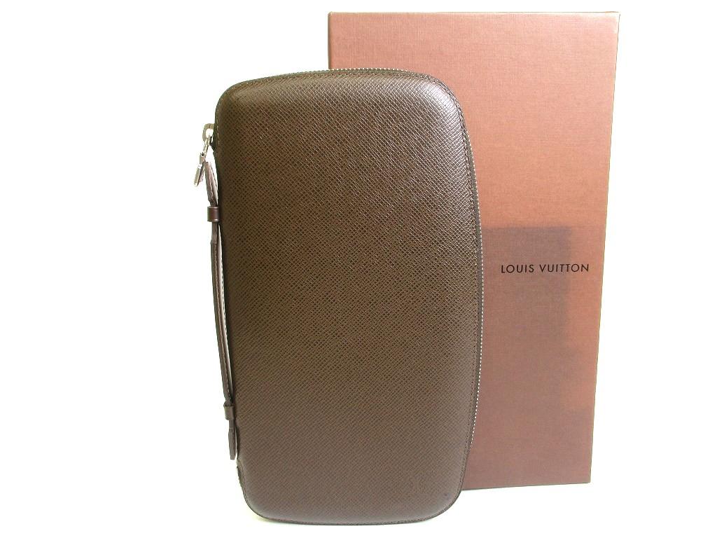 Product : LOUIS VUITTON Taiga Dark Brown Leather Round Zip Wallet Travel Case #a856
