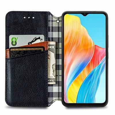 For Oppo A38 4G/A18 4G PU Leather Case Rhombus Imprint Wallet Stand Phone Cover