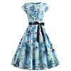 New Summer Retro Women's Crew Neck Bag Sleeve Printed Lace-Up Dress