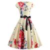 Summer Vintage Women's Crew Neck Bag Sleeve Flower Print Dress