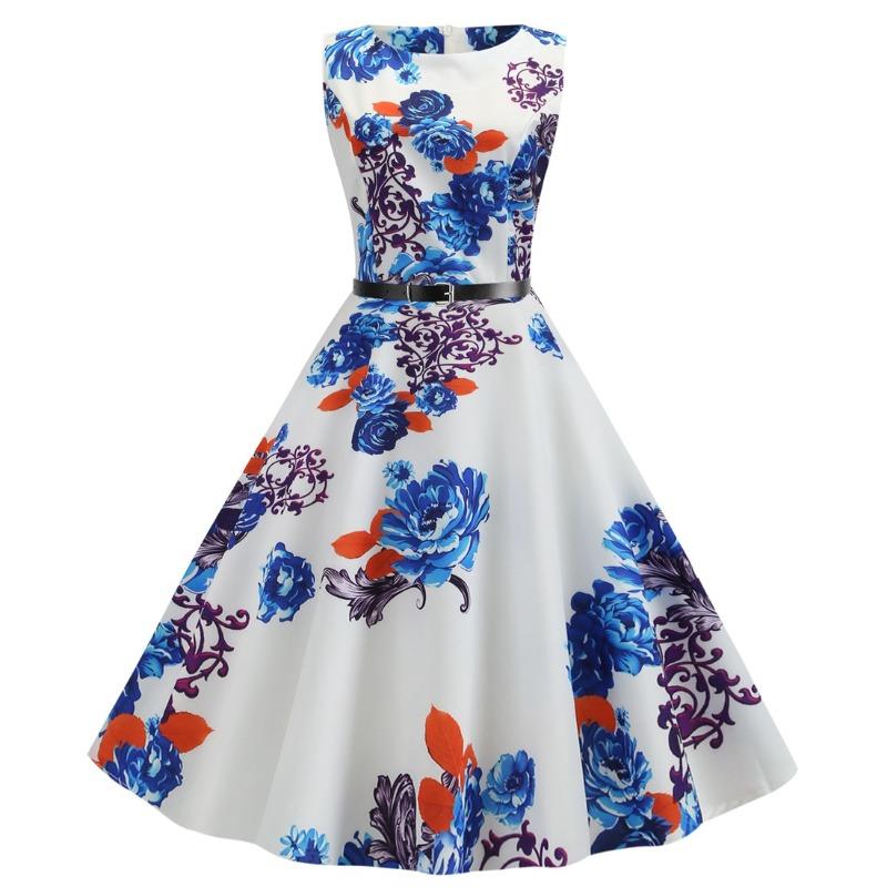 Hot Sale New Retro Crew Neck Sleeveless Printed Slim Swing Dress
