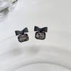 C-shaped Black Bowknot Zircon Earrings for Women Personalized Temperament Zircon High-end Sense Female Earrings