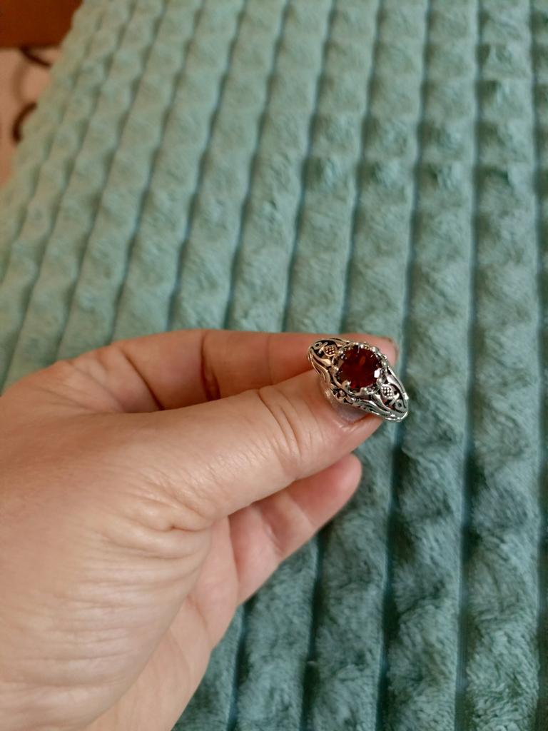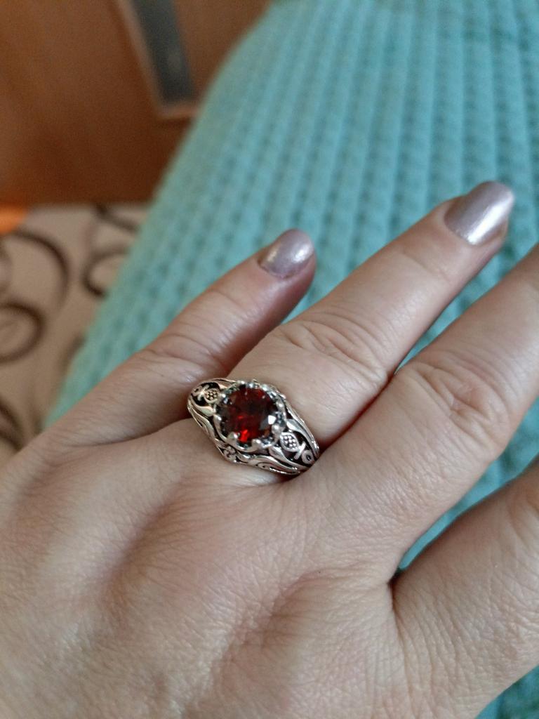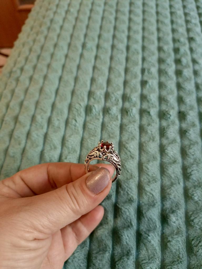 Beautiful ring. The bright red stone sparkles nobly. I recommend it for purchase.