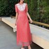 ZANZEA Women Casual Round Neck Short Sleeve Summer Lace Patchwork Long Dress