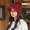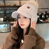 Versatile Leather Label Plus Velvet Thickened Wool Hat Outdoor Cold Protection Hat Korean Casual Face Showing Hat for Women