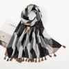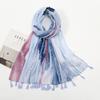 Small Fresh Medium and Retro Blue and White Porcelain Cotton and Linen Feel Scarf, Bali Yarn Silk Scarf, Blue Flower Shawl Women