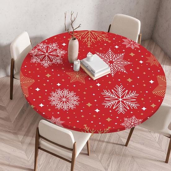 Transform your dining experience with our exquisite Christmas round tablecloths. Crafted using high-quality printing technology, these tablecloths boast clear patterns, vibrant colors, and a variety of styles. Whether it's a terrace gathering, outdoor picnic, wedding reception, or casual brunch, these tablecloths elevate any setting. Constructed from durable fabric with meticulous stitching, our round Christmas tablecloth offers long-lasting quality. Resistant to spills, UV rays, and wear, it maintains its shape even in the busiest kitchen or outdoor environment. The elastic edges ensure a snug fit on 36-40-inch round tables, making it ideal for outdoor camping or picnic parties without the need for clips or weights.