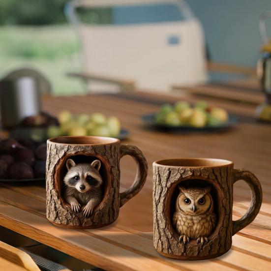 Vibrant 3D Relief Design: Stand out with the stunning 3D bark textured cup showcasing a fiery red forest animal silhouette. The intricate design adds a touch of mystery and charm, sparking conversations and captivating wilderness enthusiasts.