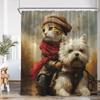 Funny Animals Shower Curtain Cat Riding Shark Corgi Dog Cartoon Children Bathroom Curtain Kids Polyester Bath Decor with Hooks