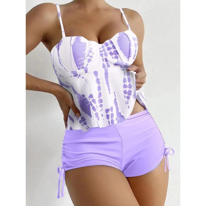 Tie Dye Peplum Tankini Two Pieces Swimsuit Women 2025 Push Up Short Swimwear Female Bathers Bathing Swimming Swim Suit Beachwear