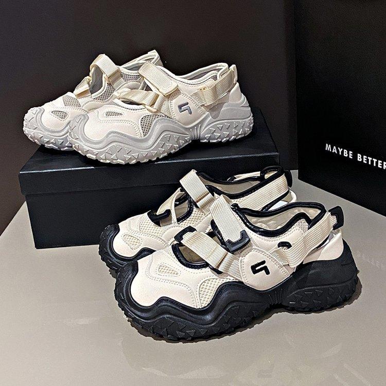 Ugly Cute Thick-soled Bag Head Roman Sandals Women's Summer Wear 2025 New Breathable Hollow Sports Dad Hole Shoes