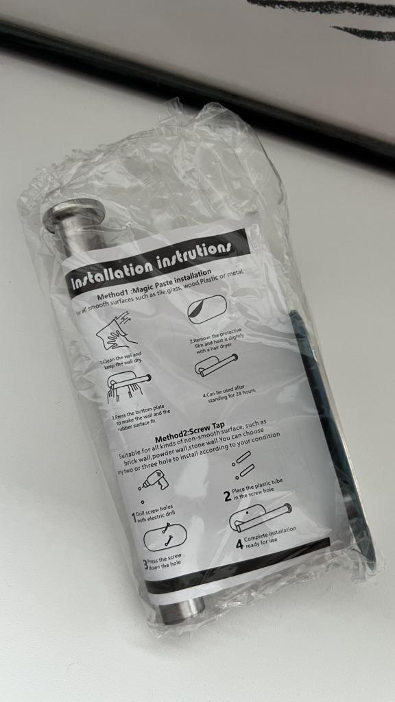 There isn't much to comment on about this product, it's a holder for the toilet paper roll. I recommend it ๐ ๐ ๐๐คฉ ๐ ๐ ๐. ๐ฆ Package Content: Holder for the roll of toilet paper. Adhesive. ๐Pros: Delivery to Spain in 26 days. โ๏ธ Well packed for the trip. Material is stainless steel. Very easy to attach thanks to its adhesive with built-in hook. It's really very useful. ๐Cons: Nothing important to note. .