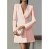 European and American Autumn Double Breasted Solid V-neck Suit French Style Women Clothes Long Sleeve Professional Dress Female Suit Dress