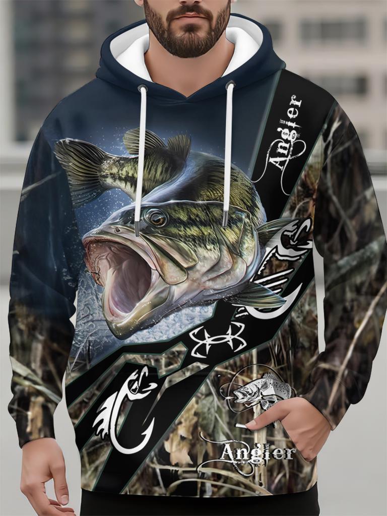 Autumn Men's Sweatshirt Casual Long Sleeve Hooded Pullover Fishing Print Top Fashion Oversized Vintage Men's Hoodie Streetwear