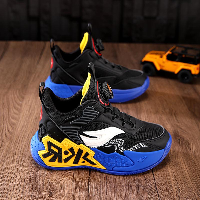 Boys Basketball Shoes Breathable Mesh Medium Older Boys Light Soft Sole Non-slip Children's Sports Running Shoes Buttons