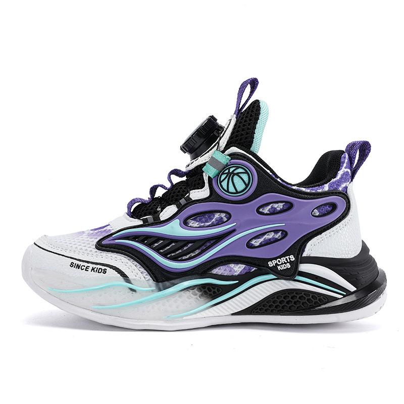 Basketball Shoes Boys Sports Shoes 2025 Spring and Autumn New Mesh Medium and Older Children's Shoes Casual Rotating Buckle Student Children's Shoes
