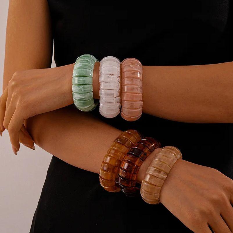 DIEZI Exaggerated Retro Resin Elastic Rope Bangles Fashion Hip Hop Round Geometric Acrylic Bracelet Bangles Women Men Jewelry