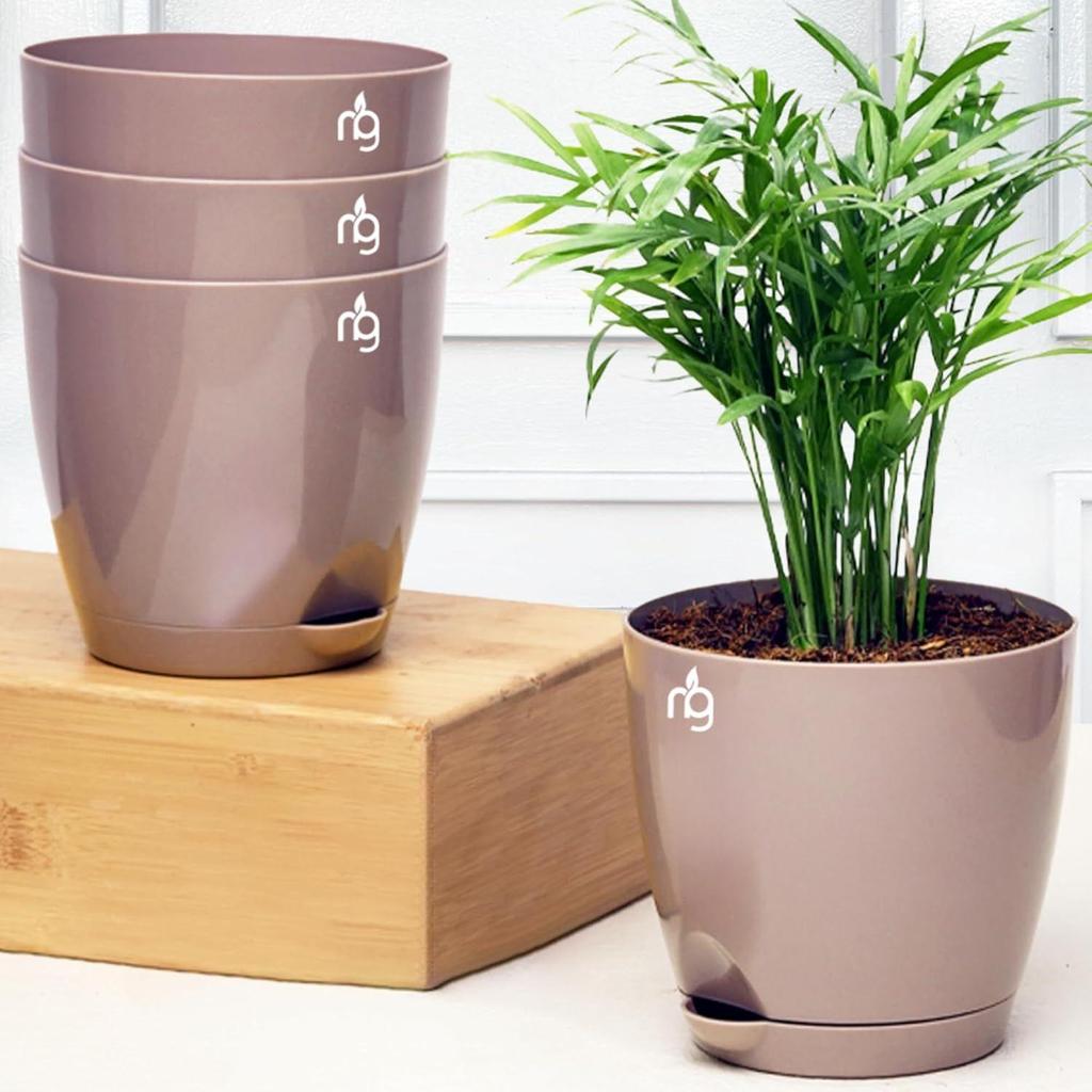 Combo of 4 Self Watering Flower Pots for Plants | Plastic Plant Pots | Planter Pots for Home, Indoor Living Room,Garden (Color: Mocha, Size: 11.5cm x 11cm Each)