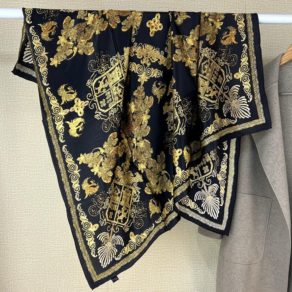 Black Gold Phoenix, Silk Crepe Satin 110 Large Square Scarf Mulberry Silk Silk Scarf Spring And Autumn Shawl Scarf Women