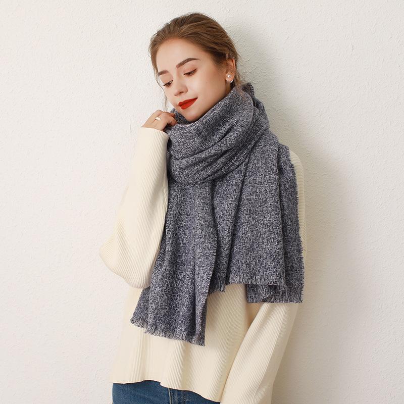 Autumn and Winter New Solid Color Fringed Imitation Cashmere Scarf Women's Winter Thickened Warm Shawl