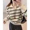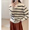 Lapel Pullover Sweater Women's Spring and Autumn New Simple Contrasting Stripes Lazy Versatile Loose Knitted Sweater
