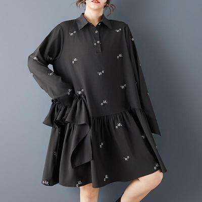 DIMANAF 2025 Women Plus Size Autumn Shirt Dress Loose Casual Oversize Long Sleeve Vintage Dress Black Zipper