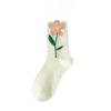 Female Spring and Summer All Match Pure Color Leisure Stereo Floret In The Tube Cotton Socks
