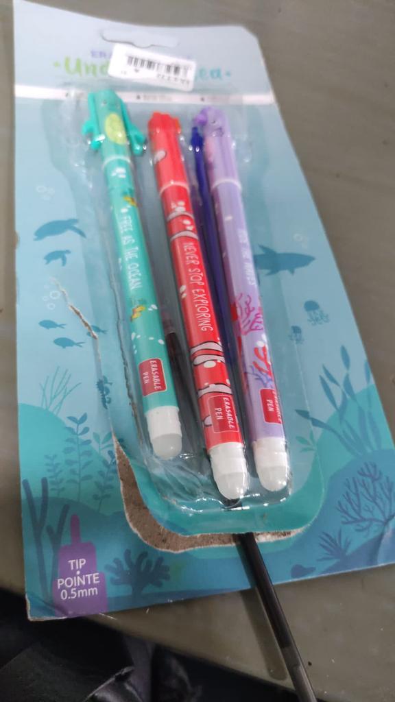 3 Pcs Erasable Gel Ink Pens Cartoon Seahorse Clownfish Turtle Erasable Ballpoint Pen with Built-in Eraser Rollerball Pen for School Office Supplies