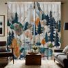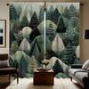 2PC Home Nostalgic Geometric Leaves Curtains With Landscape Background And Pole Pocket Curtains, Kitchen, Coffee Shop