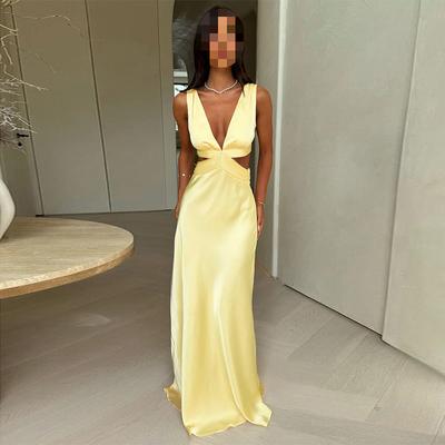 2025 European and American Women Clothes Sexy Waist Hugging Hanging Neck Backless Solid Elegant Formal Dress Dress Women