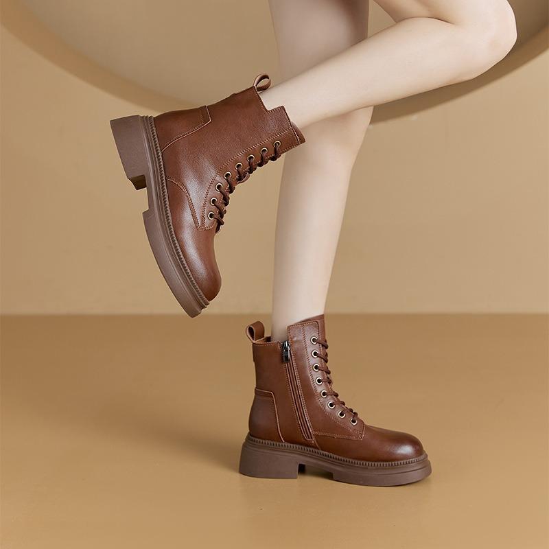 Vintage Leather Martin Boots Women's Autumn and Winter Short Boots Women's Thick-soled Lace-up Casual Large-size Women's Boots