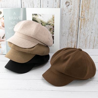 Solid Color Woolen Octagonal Hat Female Trendy British Retro Painter Beret Literary Newsboy Hat
