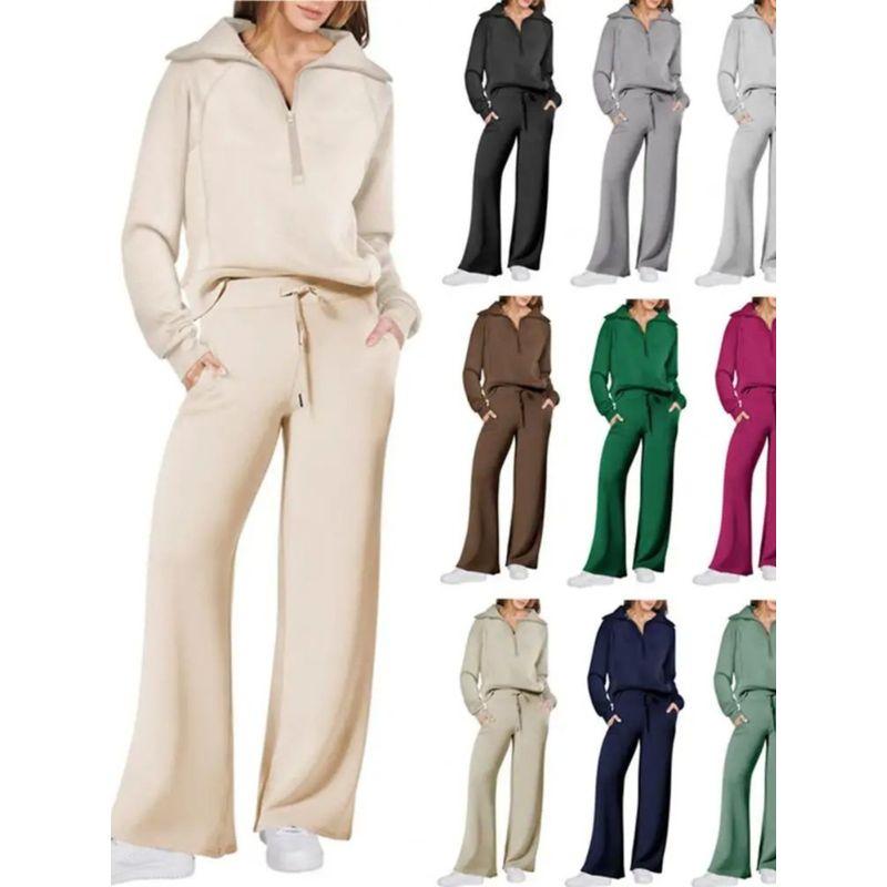 Half Zip Hoodie Wide Leg Pants Set Casual Half Zip Sweatshirt Loose Pants Suit