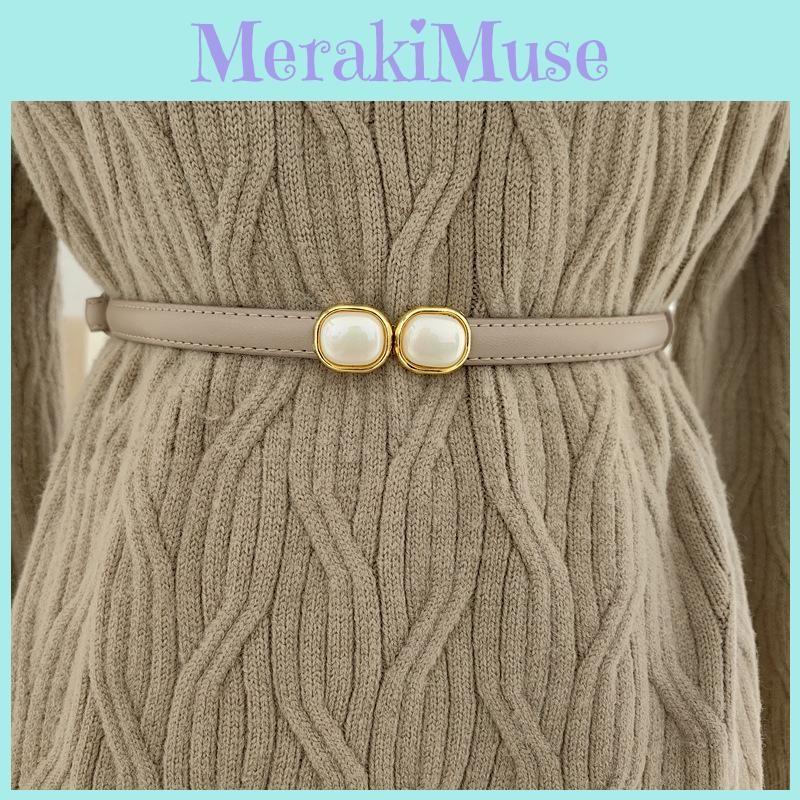 Women Leather Fashionable Belt With Pearl Metal Buckle For Office Gift Weekend