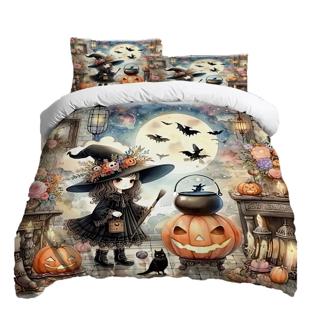 Halloween Three-piece Bedding Set Quilt Cover Pillowcase Brushed Fabric Thickened
