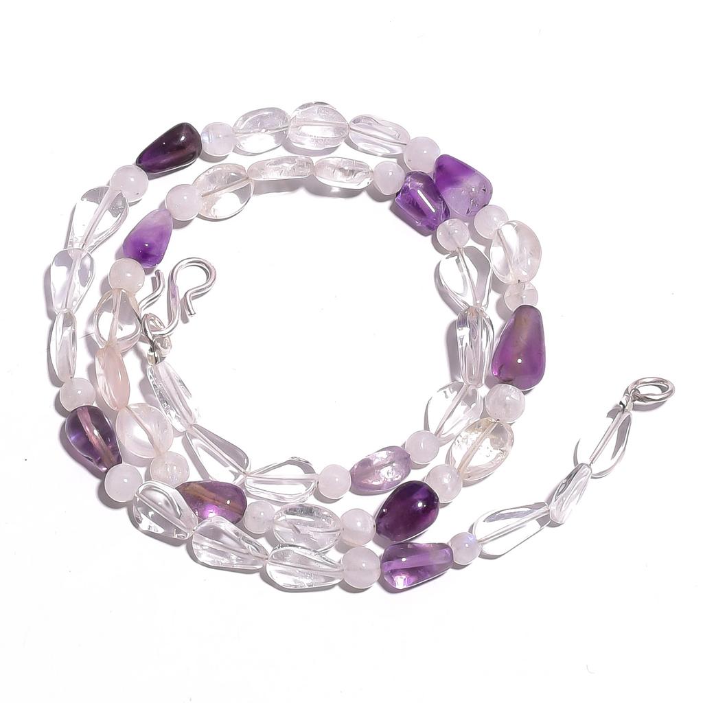 Natural Amethyst Crystal Monstone Gemstone Mix Smooth Beads Necklace 17" UB-4227 UB-4227