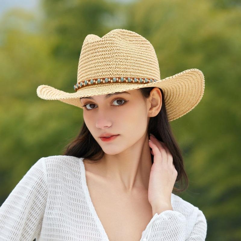 Big Eave Hat Cowboy Hat Female Versatile Sunshade Papyrus Western Cowboy Hat Summer Sun Protection Beach Fisherman Straw Hat