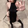 Hollow Out Anime Cosplay Costume Women Erotic Halloween Demon Cosplay PU Leather Lingerie Embroidery Print Cheongsam Long Dress