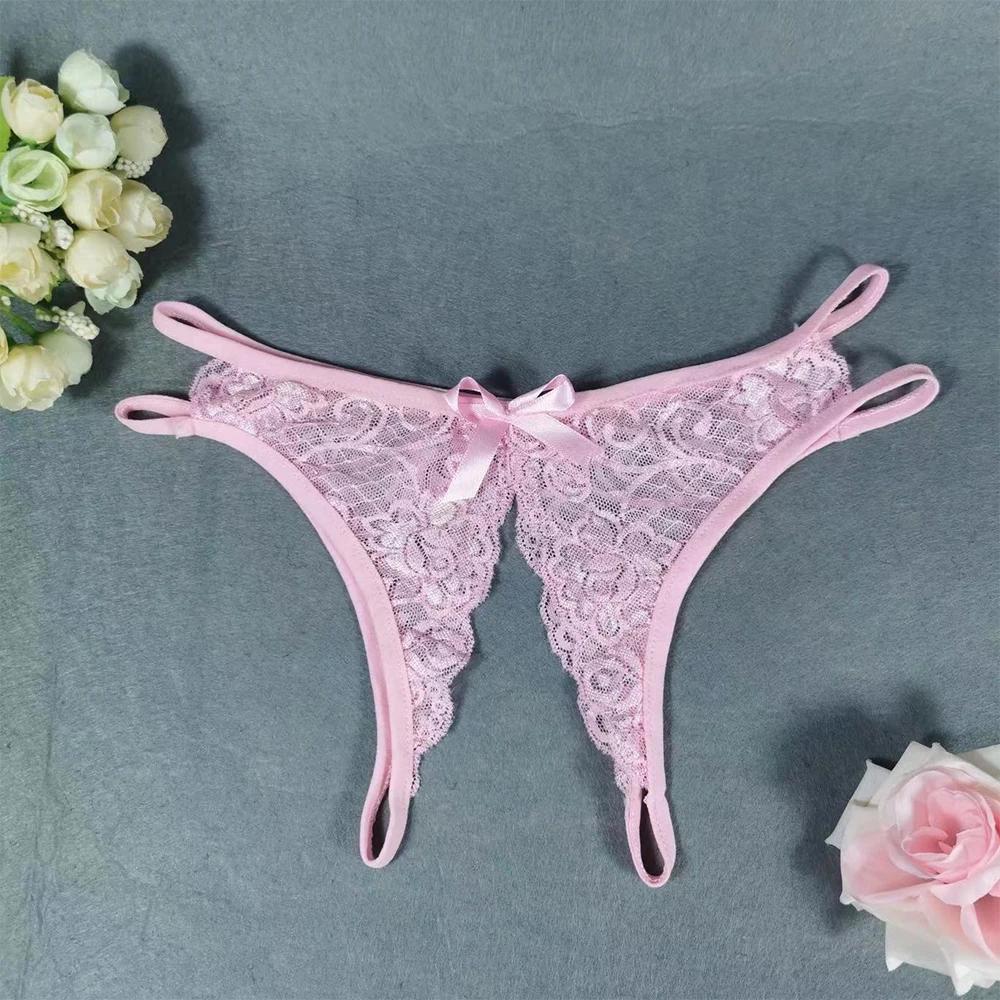 1pc Women's See Through Lace Panties Open Crotch Underwear Briefs Solid Color Female Low Waist Underpants