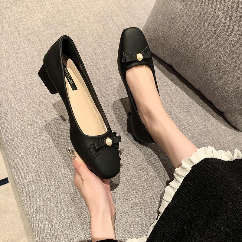 Spring New Thick Heel Bow Gentle Temperament Medium Heel Mary Jane Shoes