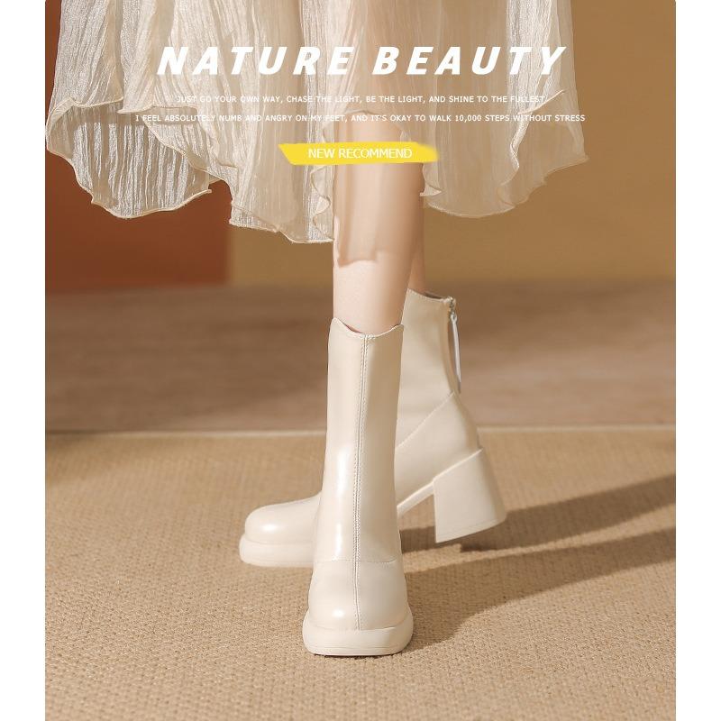 Autumn and Winter New Small Short Boots Women's Thick Heel Thin Boots Round Head Super Soft Thick Sole White Short Boots Tide