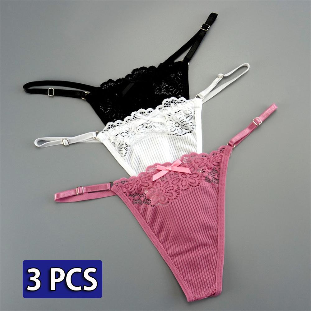 3Pcs/Pack Women Sexy Thong Low Waist Sexy Underwear Hollow Out Lace Panties Lingerie Superior Comfortable G-String Fast Send