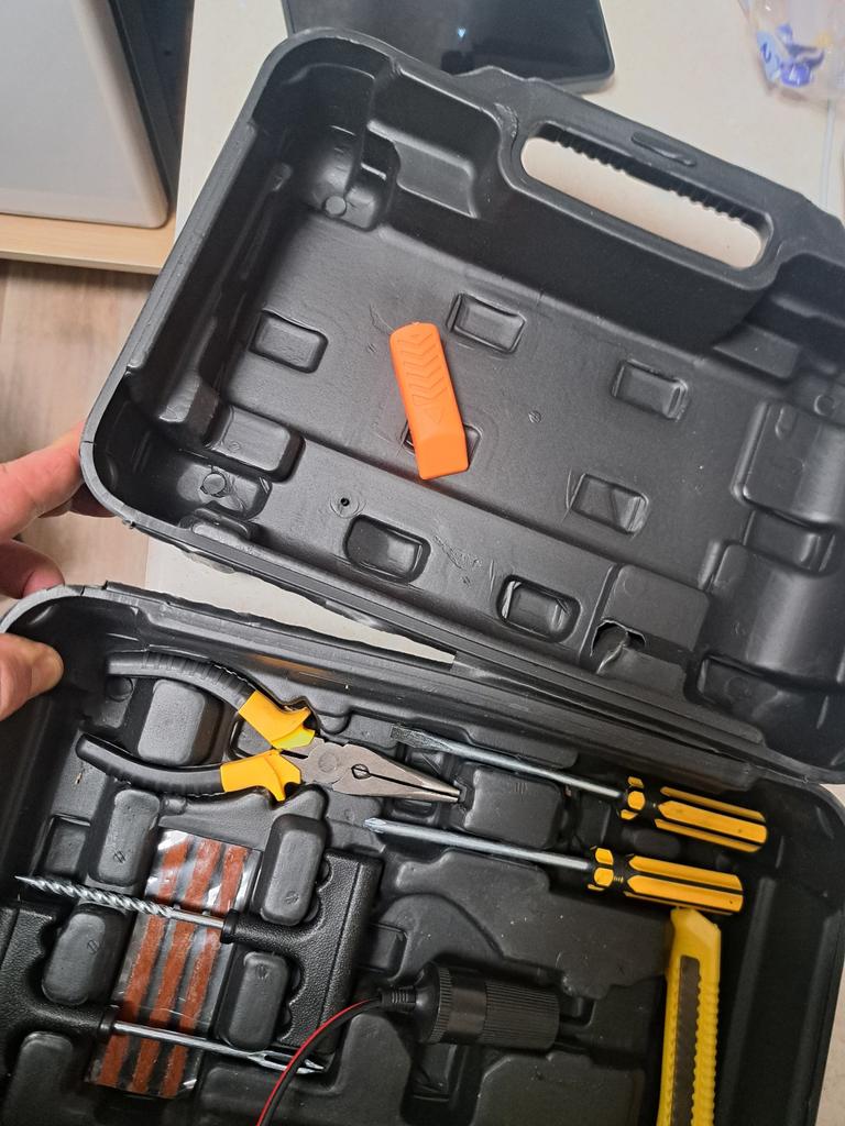 The box is broken, the lock also fell off, the contents are missing as shown in the picture. The bolt on the compressor is not screwed in. The quality is terrible!