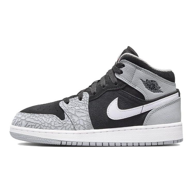 Air Jordan 1 Mid SE GS Elephant Toe Kids Sneakers Grey Black White DM6216-016