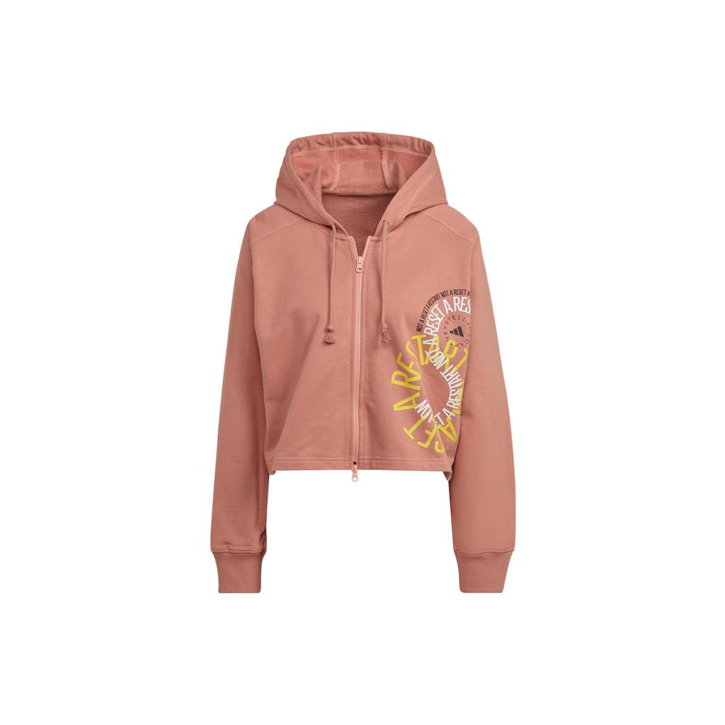 Adidas Logo Print Hooded Drawstring Jacket Women Outerwear Pink IB5891