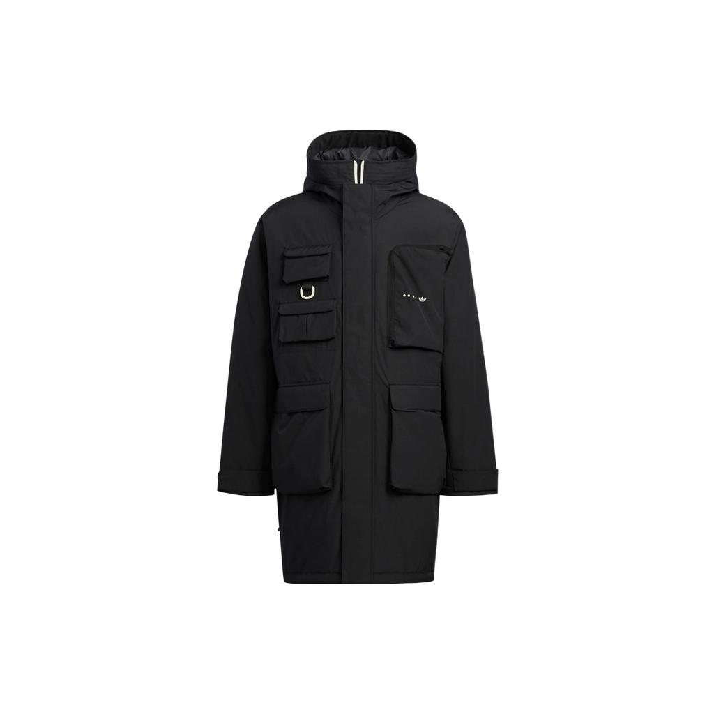 Adidas Logo Print Hidden Stand Collar Cotton Jacket Men Outerwear Black HS9459