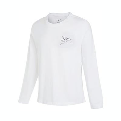 Sportswear Printed Loose Fit Crew Neck Long Sleeve T-Shirt Women Tops White FZ3489-100