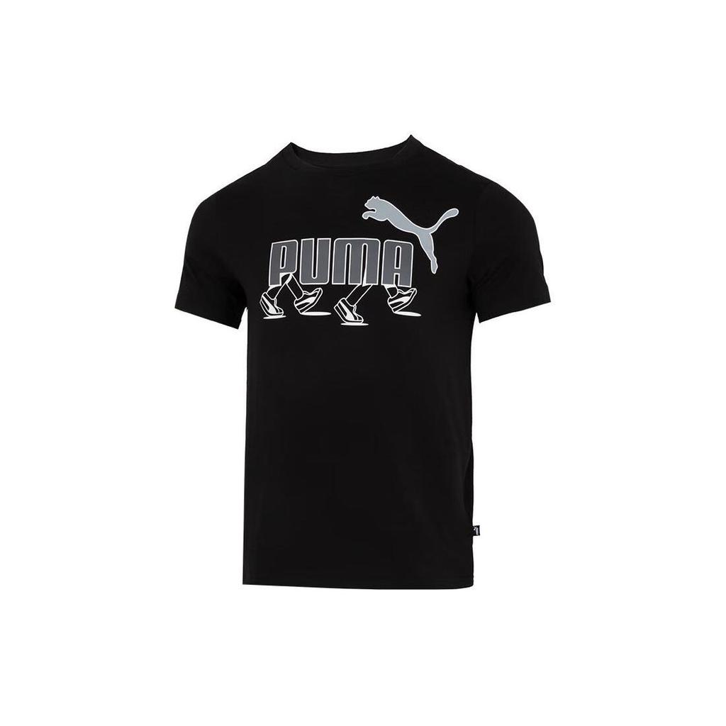 Puma Retro American Letter Logo Print Breathable Sports T-Shirt Men Tops Black 682152-01